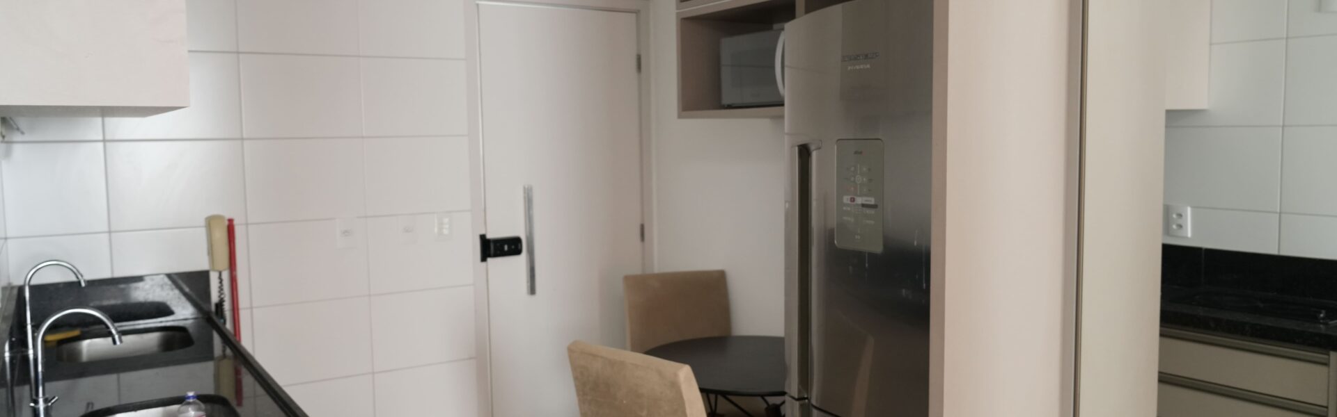 O imóvel é claro, ventilado e possui vista para o mar e para a cidade. A unidade está sendo entregue totalmente mobiliada, incluindo cama box casal, ar-condicionado, TV, mesa e cortinas. A cozinha é equipada com fogão elétrico, micro-ondas e geladeira. Conta ainda com fechadura eletrônica para maior praticidade e segurança.